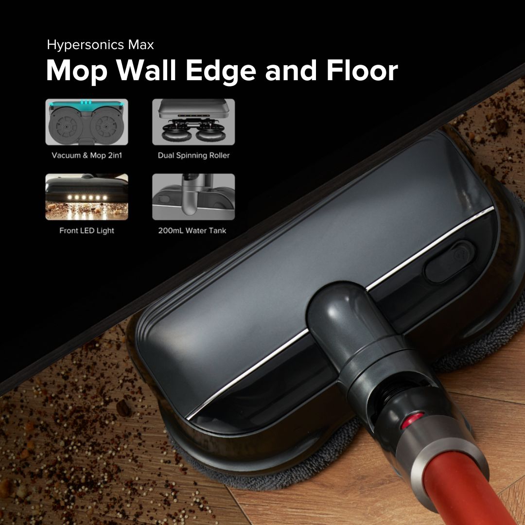 Smart 2-in-1 vacuum mop system delivers 33,000Pa suction with digital water tank for precise spray control. Dual spinning roller brushes remove stubborn stains.